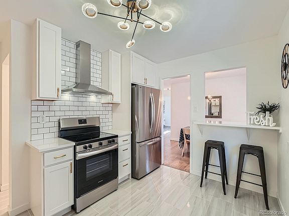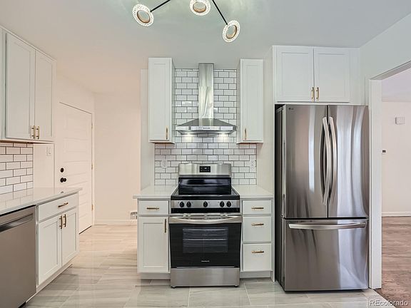 - Description: Remodeled Kitchen With White Quartz Counters, Stainless Appliances, And Gold Accents. Stunning!
