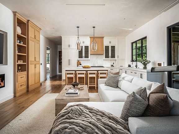 Steps away, a newly built 2-bed/2-bath ADU features soaring 10-foot ceilings, open-concept living areas, and folding steel doors that invite the outdoors in. Just off the main living area, a covered patio overlooks the expansive grassy lawn and serene setting. At every turn, the home features sophisticated, top-quality finishes, energy-efficient upgrades, and custom details. A covered breezeway connects the home to an oversized garage with EV charging, private laundry, and abundant storage, completing the ADU's thoughtful layout.