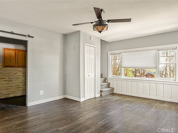 The Sweetest Vintage 1930's Cabin. Situated on a flat lot, with level entry and plenty of parking. Inside you'll find the living room, updated bathroom and kitchen, stainless steel appliances, and a bedroom on the main floor. Up the stairs is a large loft with a built in nook for a bed. Dual pane windows throughout with a storage room attached with laundry. Concrete patio outside and walking distance to downtown running springs with easy access for commuting up and down the 330. Here is your chance to own a little piece of history complete with a picket fence!