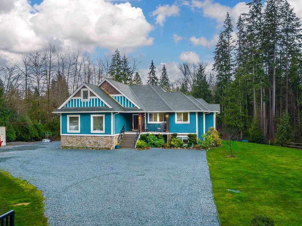 This custom built 4000+ sq ft home on 5 acres is like new! There are 4 bedrooms on the main floor! The master suite has 2 walk in closets, 5 piece ensuite with rain head shower, soaker tub & double sinks! Large island kitchen with Blue Star 6 burner French door range, butcher block island counter, quartz counters, Kohler cast iron skirted sink. The family room is open with a high end fireplace! This all leads out to the massive decks. All rooms have large windows! The walkout basement is fully finished with 2 bdrms and an awesome bathroom! Easy suite! Gardens and trees and loads of parking! High garage, Geothermal heating/cooling system! Nat/Gas Generator keeps the power going automatically! Walk to Whonnock school & Whonnock Lake Park. Incredible value here!