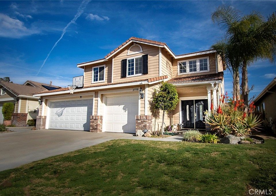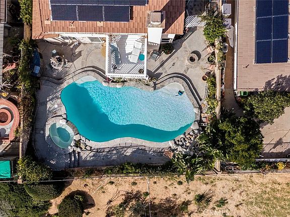 VIEW & POOL home conveniently located in the community of Saugus. Fantastic curb appeal, situated between two single story homes that accentuate the VIEWS! As you enter, notice the dramatic & soaring high ceilings boasting loads of natural light. The living room is large & open to the formal dining which makes this space a great place for entertaining. The travertine floors throughout the lower level make this space look so large & keeps this space bright & airy. To the back of the first level, notice the large great room featuring a beautiful remodeled kitchen, nice size breakfast nook & large family room. A great place to hang out with family and friends. The kitchen features beautiful quartz counters, updated cabinetry, stainless steel appliances and a view of the pool and the valley. The family room includes a cozy fireplace and also overlooks the amazing views. A bedroom and full size bathroom are located on the lower level as well as the laundry room for your convenience. Up the dramatic staircase you will find the master ensuite, two more bedrooms, a hall bathroom that is shared with the two bedrooms, and a large loft that could become the 5th bedroom. The master ensuite is at the back of the house, is large in size, includes a remodeled bathroom and its very own private balcony. This balcony is the perfect place to relax after a long day as you enjoy the views of the valley and mountains while listening to the waterfall from the pool below. Down the hall, find the other 2 nice size bedrooms and remodeled bathroom. If you need a 5th bedroom, the large loft can be converted into a 5th bedroom OR just leave this space alone and make it into a hang room or office. Love the open space overlooking the downstairs and the natural light which makes the upstairs level so bright. Wood floors throughout this upper level make this home warm and inviting. It's never too early to get ready for the spring and summer seasons by enjoying the newly plastered VIEW pool. The backyard is any homeowners dream, featuring a large pool, dining patio, wood burning fire pit, lemon tree, and lots of lush landscaping. The following updates have been made in the last few years: kitchen remodel, window and slider replacements, pool re-plaster and tile, newer pentair pool pump, newer garage door, newer shower enclosure in master bathroom, newer bathtubs and bathrooms remodeled upstairs, custom paint throughout and roman shades in the living room. Solar lease has been paid off.