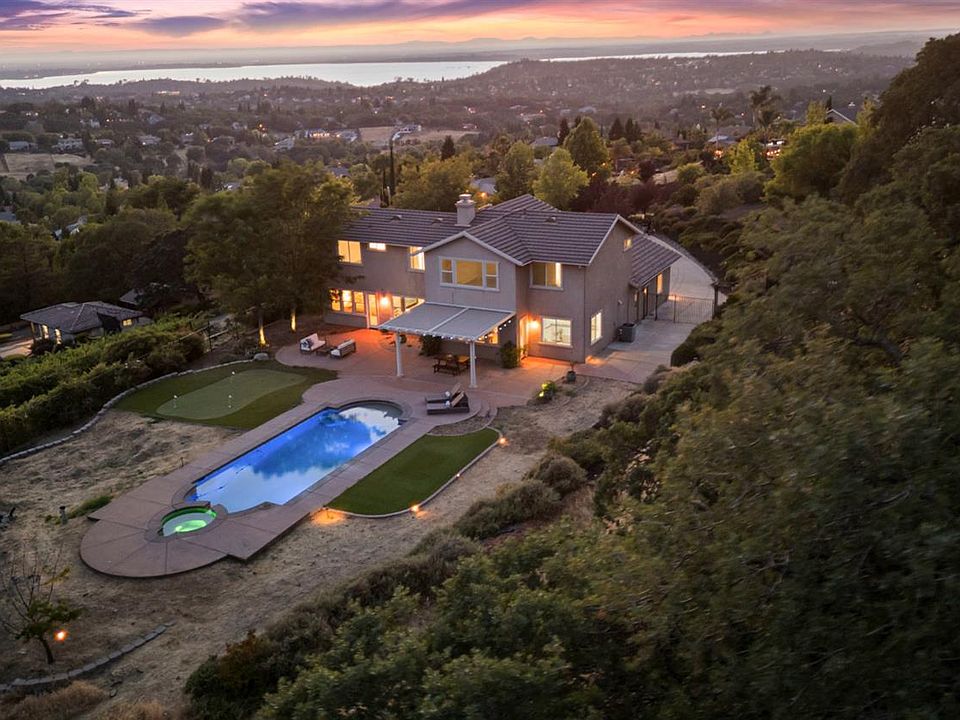 Special Financing Available! Tucked at the end of a private drive and backing to open space, this Highland View stunner, set on over an acre, delivers unrivaled privacy and views of Folsom Lake and the surrounding hillsides. Inside, a bright, open floor plan centers on an entertainer's kitchen that flows effortlessly into expansive living and dining areas. The main-level primary suite feels like a resort retreat, offering patio access, a spa-inspired bath, and an oversized walk-in closet with plenty of storage. Upstairs, generous secondary bedrooms share two full baths, while a versatile flex room is ideal for movie nights, play space, or a home gym. Step outside to your own backyard oasis: a solar-heated pool, putting green, and spacious patios perfectly positioned for sunset lounging, all framed by mature trees and natural open space. Minutes to Town Center, Folsom Lake recreation, dining, and shopping, and in an award-winning school district, this is the rare Highland View home that checks every box! Welcome Home!