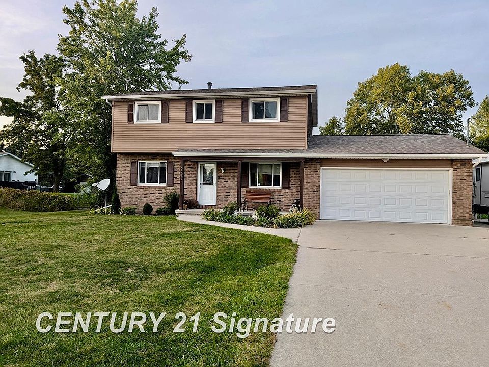 Desirable Monitor Township Home. Living room with wood burning fireplace, large dining room, eat in kitchen with island, stainless steel appliances. 3 large bedrooms, updated baths, new sump pump and water heater. Heated 2 car garage, over 1/2 acre fenced yard. Central air and shed. Immediate possession.