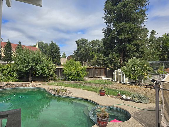 Step outside and you'll find your own private oasis. The backyard features no rear neighbors, fruit trees and a sparkling pool, perfect for cooling off on a warm day or hosting get-togethers.