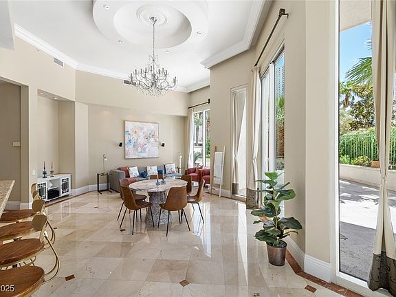 THE PATIO SEAMLESSLY EXTENDING YOUR LIVING AND ENTERTAINMENT POSSIBILITIES. THIS FEATURE SHARED BY ONLY A SELECT FEW IN THIS EXCLUSIVE DEVELOPMENT. AS YOU ENTER, YOURE GREETED BY SOARING 14-FOOT CEILINGS THAT CREATE AN ATMOSPHERE OF GRANDEUR AND OPENNESS. THE BEAUTIFUL MARBLE FLOORING ADDS A TOUCH OF ELEGANCE, REFLECTING THE ABUNDANT NATURAL LIGHT THAT POURS IN FROM EXPANSIVE WINDOWS. EVERY INCH OF THIS FULLY FURNISHED RESIDENCE EXUDES STYLE AND COMFORT. OPEN FLOORPLAN WITH BOTH BEDROOMS SEPARATED FOR PRIVACY. JUST A BLOCK AWAY FROM THE WORLD RENOWNED LAS VEGAS STRIP, YOUR NEW HOME IS IDEALLY SITUATED FOR ENJOYING THE BEST OF THE CITY. FROM WORLD-CLASS DINING AND ENTERTAINMENT TO HIGH-END SHOPPING AND VIBRANT NIGHTLIFE. EVERYTHING YOU DESIRE WITHIN EASY REACH.