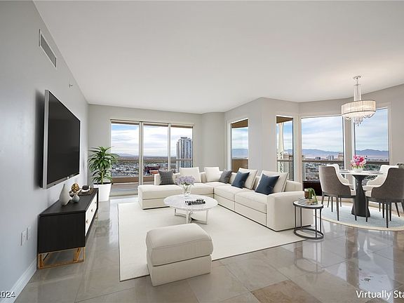 Welcome to luxury living at Turnberry Towers in Las Vegas! This stunning 2-bedroom, 2-bathroom condo 1,599 SQ FEET (builders correct and actual living sq feet floor plan) offers spacious elegance with breathtaking views of the Las Vegas skyline. Beautifully maintained, this unit features modern finishes and expansive windows that flood each room with natural light. Residents enjoy resort-style amenities, including a sparkling pool, fitness center, 24-hour concierge, and valet services. With its unbeatable location and incredible panoramic views, this condo provides an upscale