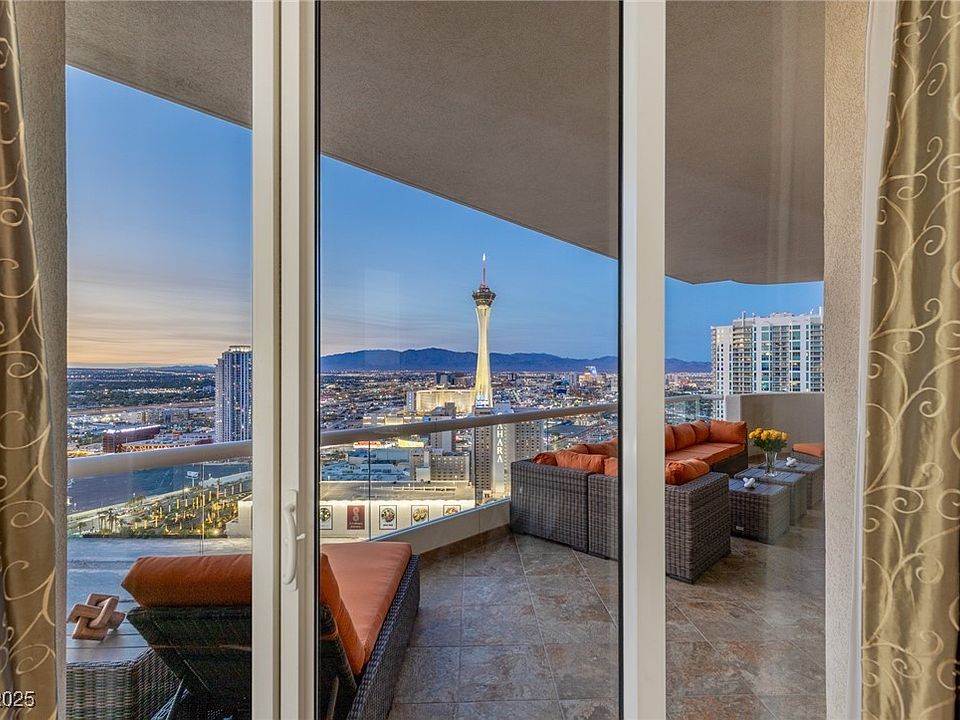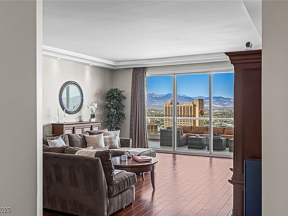 Stunning Residence on the 35th floor w Unrivaled Day & Night views. Large floor-plan & two spacious Primary suites. Panoramic views of the Strip, Downtown Las Vegas, Mountains & The lush Golf course. Dramatic 11' ceilings. A one of a kind high-rise w impeccable wood floors. Large rooms, 1 level throughout. 2,195 ft.² Interiors + 479 ft.² of balconies, in addition, a powder room, laundry room w cabinets & sink. Two Enormous terraces. 1 storage unit, 1 car space +you may valet a 2nd car. The HOA fee covers; water, gas, cable, internet, valet, concierge, limousine services, security, management on site & more. The Stirling club is located on the property grounds offering full spa services, salon, barber shop, massage, facials, nails. The club features a large & well equipped gym, pilates & yoga classes, tennis & pickle-ball courts, sauna, indoor & outdoor pools, gourmet restaurants, bar, cigar lounge, Starbucks, wine cellar & tasting room, space avail. for private functions. Welcome home!