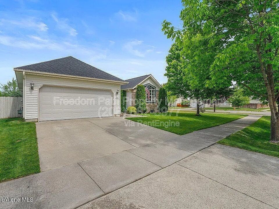 Welcome to this beautifully updated 4-bedroom, 2-bathroom home on a generous corner lot in one of Coeur d'Alene's most desirable neighborhoods. Offering 1,529 sq ft of single-level living, this home features a bright, open layout with vaulted ceilings and luxury vinyl plank flooring throughout the main living spaces. The interior is being professionally repainted in a soft neutral gray, giving it a fresh, modern feel. The inviting living area opens to a spacious kitchen and dining nook filled with natural light. The kitchen showcases freshly refinished gray cabinetry, bright countertops, and matching white appliances, including a gas range and new dishwasher. A bay window dining area overlooks the private fenced backyard-perfect for BBQs, gatherings, or morning coffee. The primary suite offers a vaulted ceiling, walk-in closet, and private en-suite bath with dual vanities and a walk-in shower. Three additional bedrooms and a second full bath provide flexibility for family, guests, or office space. Additional highlights include a separate laundry room with built-in cabinetry, an attached two-car garage, and RV parking. The oversized fenced yard features a patio and storage shed - ideal for outdoor entertaining or relaxing evenings. The corner lot provides extra privacy and curb appeal with mature landscaping and sidewalks. Located close to parks, schools, and all that Coeur d'Alene has to offer, this home combines peaceful neighborhood living with easy access to shopping, dining, and recreation. Water, sewer, and trash billed at a flat rate of $125/month. Resident Benefit Package: All Freedom Path Property Management residents are enrolled in the Resident Benefit Package, which includes HVAC filter delivery, 24/7 maintenance coordination, utility concierge setup, credit reporting for on-time rent payments, and more - designed to provide the best rental experience possible.