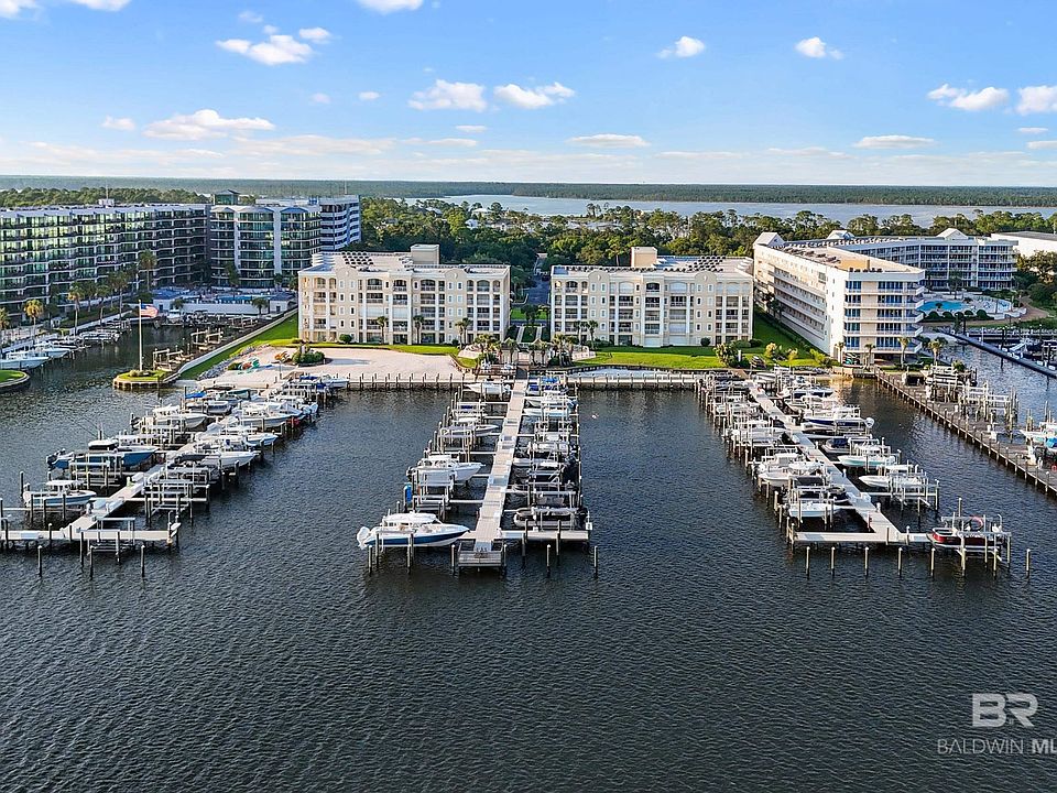 ** A BOATER'S DREAM** This unit INCLUDES a 40ft boat slip, #7, and lift with 24,000 lb capacity! Experience coastal living at its finest in this beautifully maintained 3 bedroom, 3-bath condo located on the TOP floor of the highly sought-after Perdido Grande gated complex. This unit features expansive views of Terry Cove, Perdido Pass, Robinson Island, and indirect views of the Gulf. Inside, the open-concept floor plan features a living area with direct balcony access, enjoy sunrises/sunsets and boat traffic along the pass! The kitchen includes granite countertops, stainless steel appliances, a breakfast bar, and a dining area. The master suite offers balcony access WITH A VIEW, king-sized layout, and a spa-like bath with double vanities, walk-in shower, and soaking tub. This unit is complete with a full size side-by-side in-unit washer and dryer, wet bar with ice maker, wine storage, hurricane shutters for balcony windows, and a shared storage area. Perdido Grande offers some of the best amenities in Orange Beach including: , A SANDY BEACH, indoor and outdoor pools, hot tubs, sauna, fitness center, boat slips, and fishing pier with composite flow-through decking. Situated in a prime location, the property is minutes from Orange Beach dining, shopping, and entertainment, while offering a quieter, more private setting. Buyer to verify all information during due diligence.