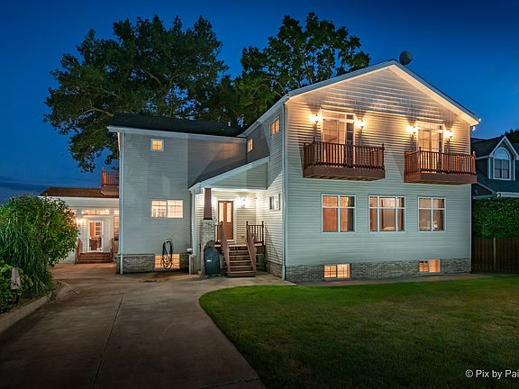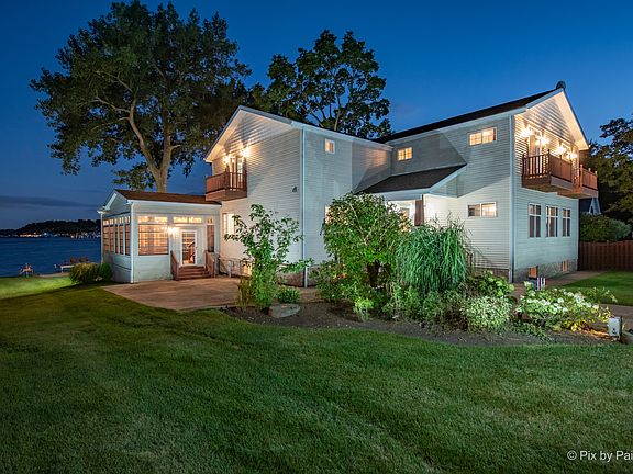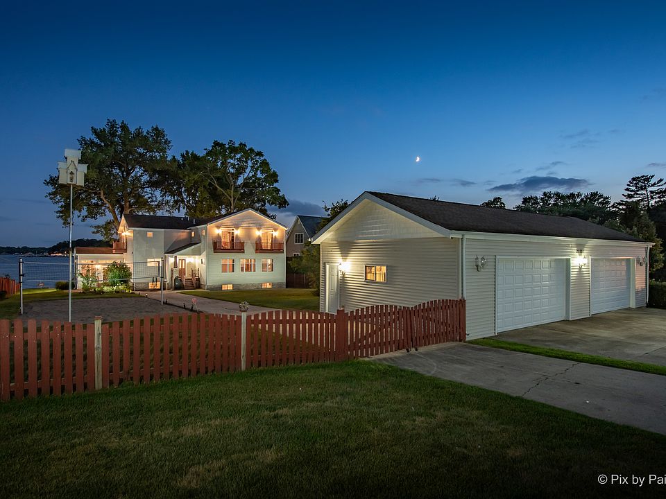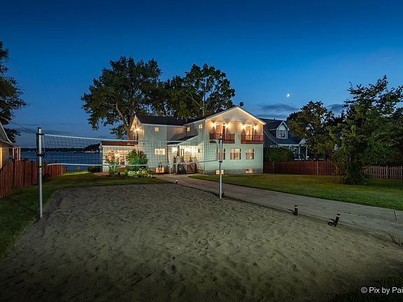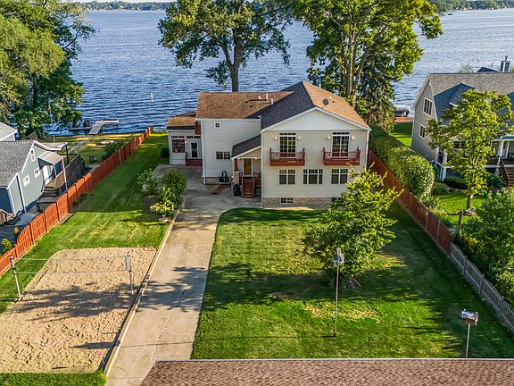 This is the one you've been waiting for! Hardwood floors flow seamlessly throughout the main and second levels, connecting each thoughtfully designed space. The kitchen is a true centerpiece, featuring a large island, quartz countertops, and plenty of cabinetry. The dining area, open to the kitchen, offers lake views and direct access to the incredible three-season gazebo-surrounded by windows to showcase sweeping Nippersink Lake views, with access to the yard and waterfront. The expansive first-floor primary suite boasts a walk-in closet and a spa-like bath with separate shower and soaking tub. The sun-filled living room opens to the deck, where more stunning lake views await. Upstairs, you'll find four generously sized bedrooms, each with walk-in closets, private balcony access, and nearby full baths-perfect for family or guests. The walk-out basement is designed for entertaining, complete with a family room, bar/potential kitchenette, rec room, and sitting area. Two convenient powder rooms make it easy to freshen up after a day on the Chain O' Lakes. Step outside to your dream backyard, featuring a steel seawall, a brick paver patio, and deck-plus a private volleyball court for even more fun. A 4+ car garage and long concrete driveway provide ample parking for all. Whether as a primary residence or vacation getaway, this home offers the perfect blend of comfort and space for entertaining. Conveniently located near the Metra, local farmers markets, summer concerts, Wilmot Mountain, and more-get ready to enjoy year-round fun on and off the water!
