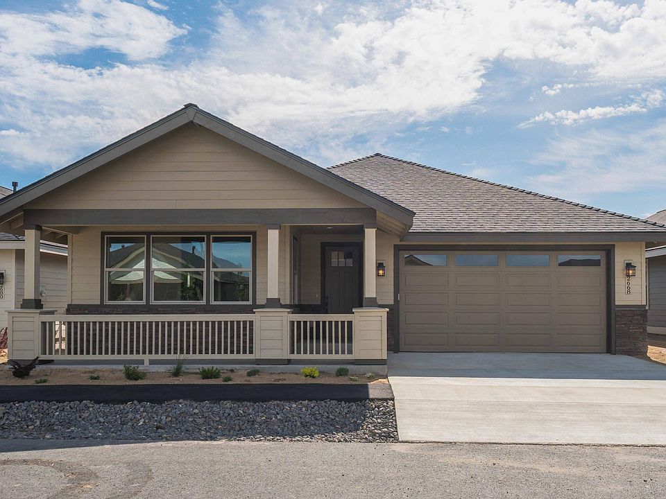 LOT 57, the Cedar floorplan in Dry Canyon Village, Central Oregon's premier age restricted 55+ gated community. The home boasts a covered front patio at it's entry, a kitchen with solid quartz counters, a 3 piece Whirlpool appliance package, an undermount sink, a breakfast nook with abundant windows and a separate dining space that is sure to fit the entire dinner party. Just off the living room is a sliding glass door that leads to a covered back patio perfect for entertaining. The master bedroom has back patio access through a glass door and its own ensuite bathroom with a mud-set tile shower. The second bedroom is perfect for an overnight guest or roommate. An upgraded trim package with fully wrapped windows, vinyl plank flooring, 8' passage doors, laundry closet and double car garage finishes the interior features. A backyard fencing option is available if you need to keep Fido in. The community center will feature a yoga studio, pickle ball courts, indoor lap pool and more!