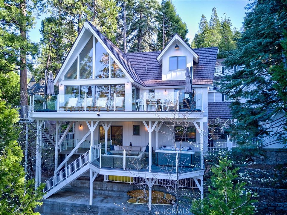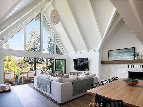 Welcome to Mallard’s Landing where a one of a kind luxury lakefront experience awaits. As you enter, take in stunning lake and forest views from dramatic A-frame floor to ceiling windows. Enjoy indoor and outdoor entertaining at its finest with La Cantina doors and expansive two-tiered decks. No expense spared, masterfully crafted by Brian Dolman Construction and flawlessly designed by renowned Brooke Wagner. Designed with extensive detail for aesthetic and comfort from heated bathroom floors to high-end designer materials, and finishes throughout. Space for everyone with entry level ensuite, private upstairs ensuite and adjoining loft, bunk room includes three custom built oversized bunks, and detached guest studio. Meander down a private trail to the new single slip dock and dock house where Lone Pine Island is your backdrop. Short stroll to the Lake Arrowhead Village and Brewery. After a fun day on the lake, spend the evening enjoying your outdoor living space, relaxing by the fire-pit or in the spa. Complete renovation list available upon request.