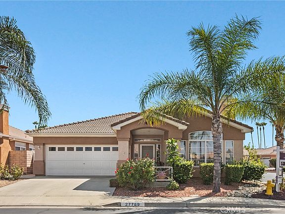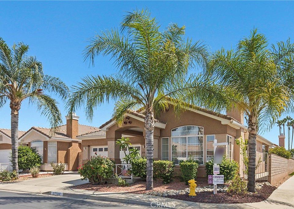HUGE PRICE REDUCTION! This lovely single-story home with 2 bedrooms and 2 baths is situated on a corner lot and is ready for your personal touch. It's located in the popular 55+ gated community called "The Club." The main bedroom has its own upgraded bathroom with a beautiful walk-in shower, double vanity sinks, and mirrored closets. The kitchen features stainless steel appliances and tile flooring. You'll find recessed lighting and ceiling fans throughout the home, along with a newer air conditioning system to keep you cool in the summer. The front and back yards are easy to maintain thanks to a sprinkler system. The low HOA fees grant you access to community amenities such as a swimming pool, spa, BBQ area, game and exercise room, library, tennis courts, sports court, and more. Don't miss out on this charming home in one of the best senior living communities in Southwest Riverside County!
