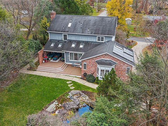 Hampton Twp SD | 4,500+ sq ft custom brick with main-level primary retreat plus second upper level primary ensuite, fully owned solar panels, whole-house generator, dual HVAC & tankless hot water. The serene primary includes a cozy reading nook overlooking the tranquil fish-pond, spa bath w thermo-masseur tub & oversized walk-in closet. Skylights & Swarovski chandeliers enhance hardwood, wainscot, fresh neutral paint, new carpet & plaster moldings. Chef’s kitchen features JennAir/KitchenAid, exotic granite, pot filler, Silgranit dual sink, and built-in pantry. Step outside to covered Trex deck designed for mindfulness & connection with nature. Framed by landscaping and the gentle sound of the cascading waterfall, the backyard offers a harmonious space for morning tea, twilight dining, or quiet reflection.