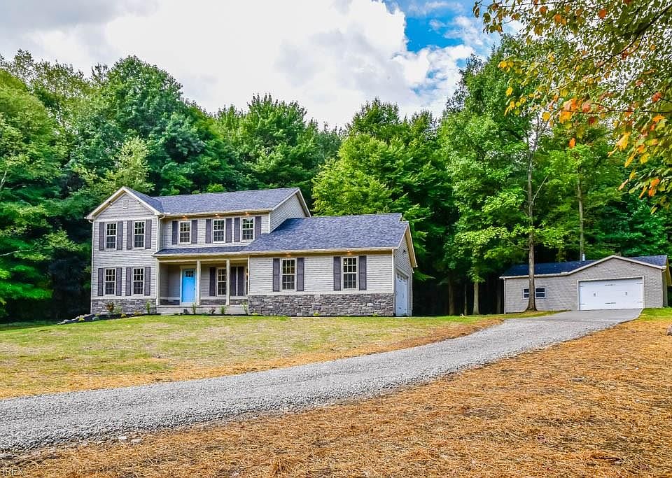 Breathtaking 4 bedroom, 3.5 bath colonial tucked far back on 6 acres! Picturesque exterior with wooded views in every direction, really takes you away from the hustle and bustle. 2-car attached side load garage plus a 2-car detached garage with additional 24x16 storage room or workshop! Inside has been completely remodeled in todayâs style with new flooring and fresh paint throughout! Prepare your favorite dishes in the stunning kitchen with new white cabinets, stainless steel appliances, granite countertops, tile backsplash, breakfast bar and a picture window. Enjoy meals in the casual dinette or in the formal dining room with crown molding. The great room boasts a beautiful brick fireplace with an elegant wood mantle. Down the hall, thereâs a half bath, laundry room and an office with backyard access. Upstairs, there are 3 bedrooms. The master suite offers vaulted ceilings, a walk-in closet and a private full bath with skylights, a jetted tub, dual sinks and walk-in shower. The main full bath has tile flooring and a skylight. The finished, walkout lower level is beautifully done and is complete with a rec room, wet bar, full bath and a fourth bedroom - perfect for hosting guests! Out back, thereâs a massive deck. It includes a covered portion with a sunken hot tub for ultimate relaxation. Updates include new concrete, roof, interior doors, front windows, front door, new lights and more! A must-see property!