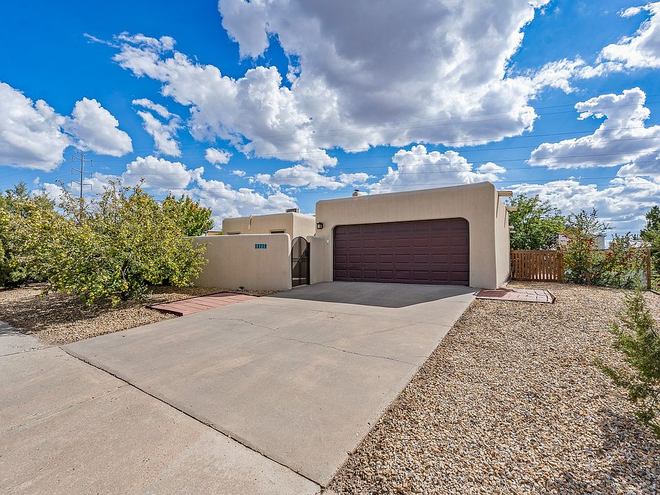 coffee or evening glass of wine while taking in breathtaking views of the Sandia and Ortiz Mountains. The yard is beautifully