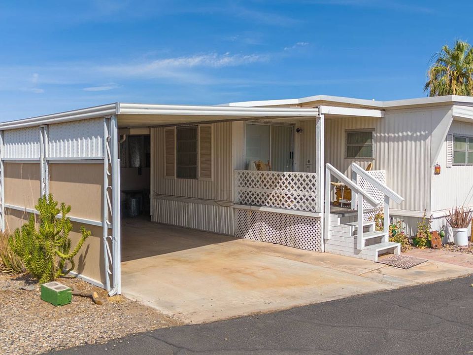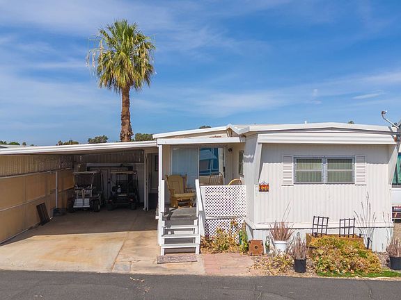 Welcome home to this charming 2-bedroom, 1.5-bath manufactured home. Built in 1968, this well-maintained home offers a spacious open-concept living area that flows into the kitchen and dining space-ideal for both entertaining and everyday comfort. A cozy den provides the perfect spot for hobbies, relaxation, or a home office. This property comes fully furnished, making move-in simple and stress-free. You'll also appreciate the three storage sheds that provide ample room for tools, seasonal items, or extra storage. As a bonus, a golf cart (sold as-is) is included-perfect for exploring the community. Friendly Acres is a welcoming 55+ community and RV resort featuring fantastic amenities, including a pool and spa, pickleball and tennis courts, a recreation room, and a clubhouse. Whether you're looking for relaxation or an active lifestyle, this home offers a wonderful opportunity to enjoy the best of Yuma living.