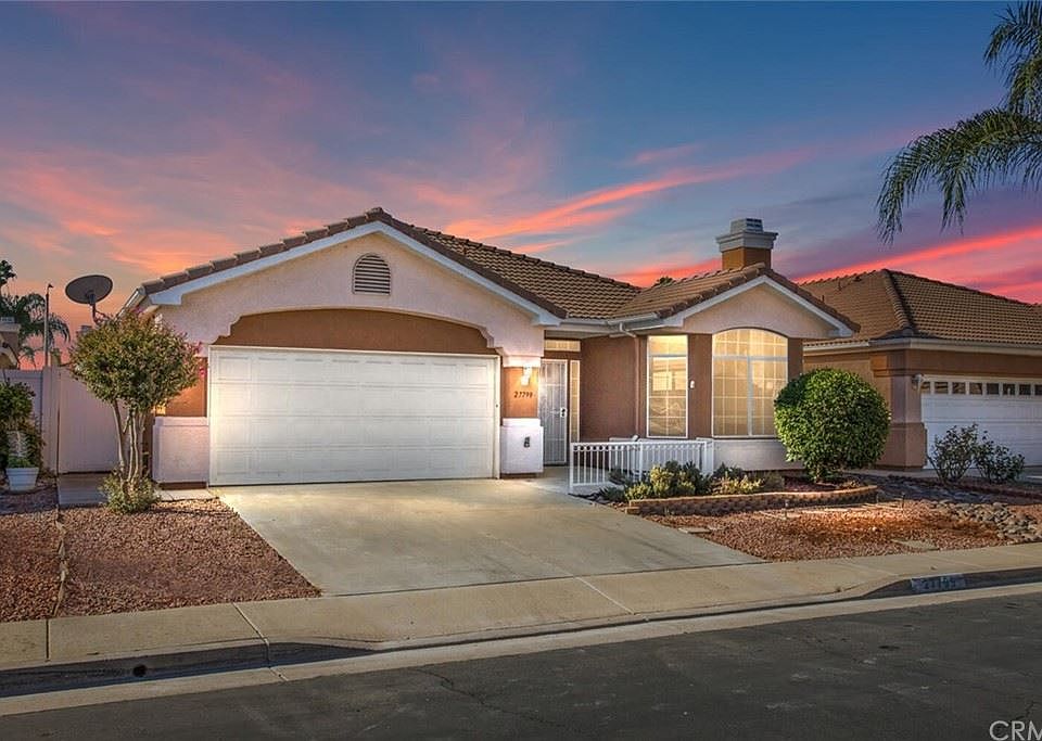 Beautiful, fully remodeled and Upgraded single-story home in a gated 55+ community. " The Club" is in a highly desired community located in Menifee. The home is turn key!!! You will walk into extremely open floor plane with loads of natural light, new flooring, new paint, a new fan and remodeled cozy fireplace . As you enter into the beautiful kitchen you will love lots of natural lighting, new sliding glass door, all new flooring, all new paint, new stove, new dishwasher ,new kitchen backsplash ,new quartz counter tops, new cabinets new fixtures and with lots of storage, large sink. Upon entering hallway you will find large storage closet for extra storage, has new paint and flooring and door that leads directly to garage. Relax in the master bedroom with new paint and new carpeting appointed with a lavish remodeled bathroom, step into the shower with new beautiful tile throughout flooring and wall, mirrored glass closet doors , new lighting , new dual vanity with quartz counter, new mirrors, new flooring, paint and fixtures and the second bedroom has been newly painted and complete with new carpeting. Enjoy the serene backyard with covered patio, block wall, vinyl fencing, garden planters and a charming water feature. Active community offers a beautiful club house, pool, spa and other amenities. This Home is so beautifulyou will fall in love with it!!