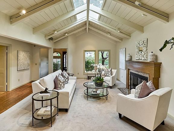 Though just blocks away from shopping and dining in downtown Los Altos, you may opt to never leave this relaxing oasis. Situated amidst lush floral grounds with tremendous multi-level yard, fragrant gardens along brick-lined walking paths, a large deck, and 3 balconies. Inside, the formal entry opens to a spacious living room with vaulted ceiling, skylight and fireplace. An open chefs kitchen with island, walk-in pantry, and abundant cabinetry conveniently caters to gatherings in the adjacent family room with full bar, formal dining room, and backyard deck. Personal accommodations included 2 upstairs bedroom suites, plus a main-level bedroom ideal for home office or guests. The master retreat is a romantic sanctuary for two with cozy fireplace, private balcony, two walk-in closets, and a spacious bath with two separate tiled vanities. All powered by solar-panel electricity, this home is just a moments to downtown Los Altos with access to highly rated Los Altos schools.