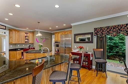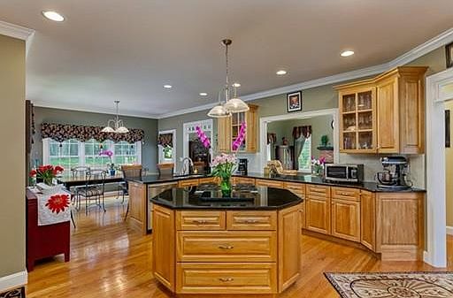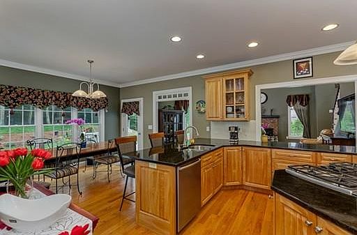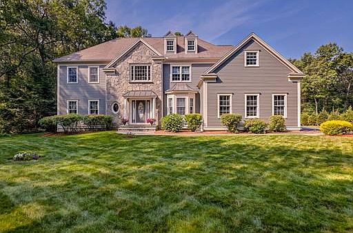 Majestic PRIVATE professionally landscaped 3.71 acre lot is the setting for this MAGNIFICENT custom Gassett-built home. Set far back from a country road, the home is surrounded by natural woods & offers a quiet retreat. Enjoy your private oversized Trex deck, patio, stone wall, hot tub & two-tier lawn, surrounded by natural beauty. Entire 1st flr HDWD. Stunning open design simplifies entertaining--gorgeous chef's kitchen-- black GRANITE counters, octagonal island & top-of-the-line STAINLESS appliances (Sub-Zero frig, double wall ovens). Huge two-story family room w/ fireplace, 2nd staircase & balcony. Open formal living/dining room with custom millwork, columns, & wainscoting. First floor office features French doors and bay window. Spacious master suite with walk-in closet & master bath with jacuzzi. 3 additional large bedrooms (one w/ HUGE walk-in closet/storage). 2nd floor laundry rm w/ sink. Walk-up 3rd floor offers quiet space. Basement is finished--approx 611 sq ft flex space.