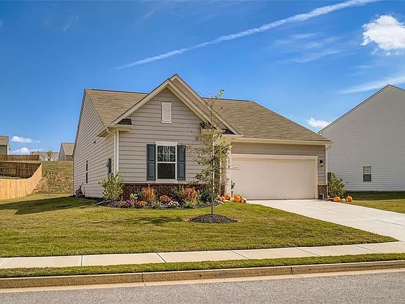 Beautiful ranch with 3 bedrooms, 2 full baths is like new with the most desirable upgrades and move-in ready! Kitchen upgraded with quartz countertops and matching backsplash, single sink, touchless faucet, soft close cabinet doors, and undercabinet lighting. Open kitchen/breakfast room/family room concept with LVP for easy maintenance. Owner suite is just off family room with upgraded tiled shower and fixtures, leading to a spacious walk in closet. The two secondary bedrooms are generously sized and located at the front of the home for use as a guest bedroom or home office. Full sized laundry room, washer and dryer remain. The patio is under roofline with remote controlled ceiling fan and lighting, and has been extended to include a grill pad. Best of all, the patio is shaded by a remote controlled awning with lighting for shade and privacy. Located on Highway 124 near I-85 with access to Braselton, Hoschton, and Chateau Elan.