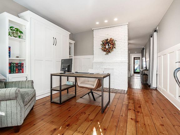 Picture yourself in this beautiful home on a brick street in historic German Village. The current owner has made many updates since purchase, including: 2022: HVAC, custom kitchen cabinet, Murphy Bed addition, original wood windows made operable, original pine floors refinished, interior and exterior painted, bathroom surround tiled, new lighting,new box gutters; and in 2024: custom sliding door to patio, new window in stairwell, front storm door, back fence replaced, front iron fence cleaned and painted; lastly to finish up the improvements list in 2025, the chimney was sealed and tuckpointed, and the back roof was replaced. There is so much to appreciate in this home from the generous bedroom and closet to the second floor laundry (LG® washer and dryer remain) in the full bath, a large fenced yard with shed and a deck to enjoy this fall and beyond. The kitchen features granite counters, new lighting, all Kitchen Aid® appliances including gas range, dishwasher, microwave, and refrigerator with bottom drawer freezer. Enjoy the character of German Village in this turn of the century home with exposed brick, a decorative fireplace, wainscoting, and a covered front porch perfect for welcoming guests or a quiet book read as the neighbors and visitors stroll by. Convenient to restaurants, Frank Fetch Park, and downtown for an easy commute.