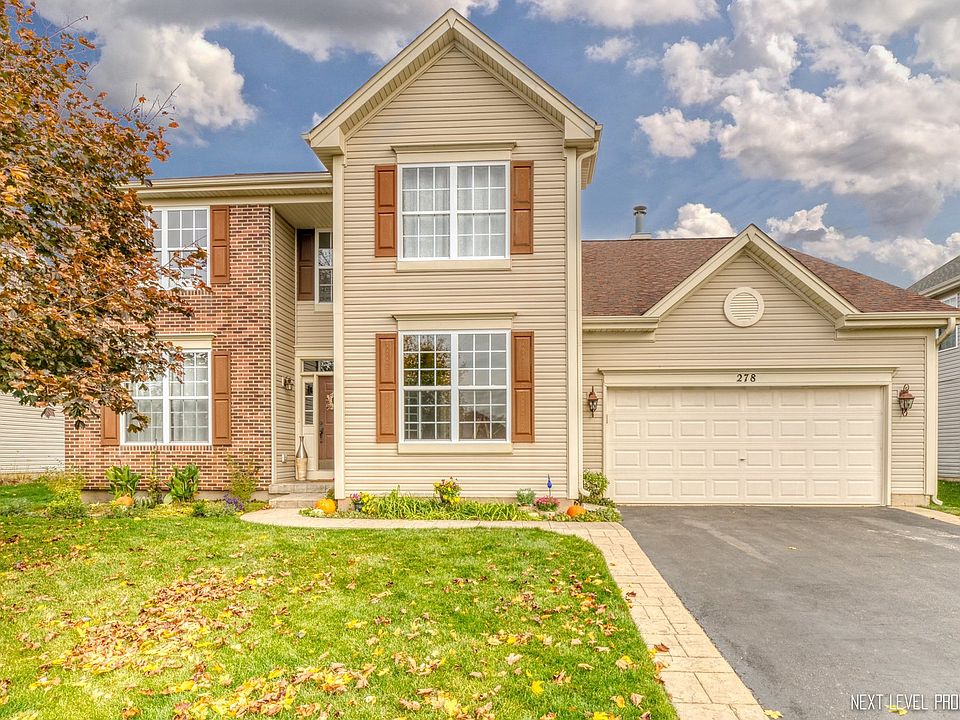 Get ready to FALL in love... This true 5-bedroom 3.5 bath in Windsor Point will check all your boxes and then some! Beautiful maple floors throughout the first floor, brand new carpet and freshly painted with white 6 panel doors and trim. The first floor office is conveniently located and offers a great view. The kitchen is truly a gem with custom cabinets featuring multi-level drawers, tons of cabinets, leathered granite countertops with a beautiful, tiled backsplash along with a double oven. The family room features a double-sided fireplace that is shared with the sunroom that overlooks the peaceful backyard. All the bedrooms are large, 3 of them feature walk in closets. Bedrooms #2 and #3 share a jack and Jill bath with 2 separate sinks. The Master Bedroom is over sized and features a luxury Master Bath Suite. All the bathrooms have been remodeled. The basement is huge and ready for your finishing ideas. Walking distance to the neighborhood park. The location is great, easy access to I88. Shopping and dining nearby, highly rated Kaneland Schools. Make your appointment today to be in your new house by the holidays!