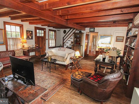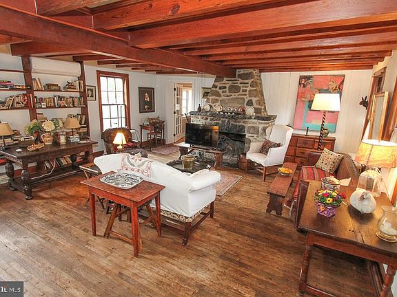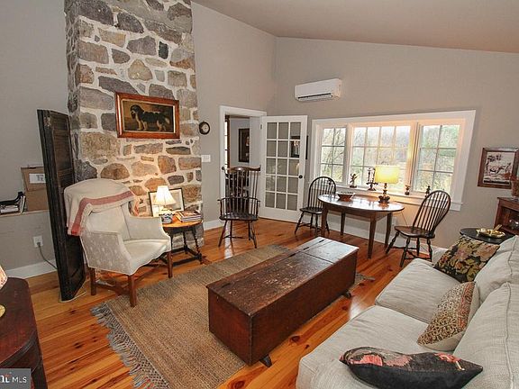 Welcome to 278 Fry Road- an Oley area gem! From the German Clapboard siding to the beautiful stone fireplace this 3 bedroom 2 bath Colonial is very charming . As you enter the front door you are greeted in the living room with wood floors, exposed beams, wall shelving. The mini splits here and in the sitting room provide comfortable heat and air conditioning. The sitting room , added in 2020, features a vaulted ceiling and the stunning floor to ceiling stone of the back of the fireplace. There's a closet here and a nook for a desk. Moving over to the 2010 renovated kitchen you find beautiful cabinets with soapstone countertops and farmhouse sink, high end appliances and a large island workspace. The room can accommodate an 8 person dining room table. Down the hall is a small room which can be a bedroom or in home office. In 2017 a fully tiled bath with walk in shower was added across the hall. The wood flooring , exposed beams, and period hardware continue as you go upstairs. Here you find the large main bedroom and second bedroom. The full bath features penny tile flooring. The 3rd floor is bedroom number 3. It's a large yet cozy hideaway . Let's go outside where there are 2 patios, a fenced area for your dogs and a Koi pond. Access to the studio, which has electric and water, is off the patio. Mature landscaping adorns the yard surrounding the house . You can create your own walking path in the field and woods -you have 3.89 acres of outdoor space. If you are looking for history and charm with one floor living options, look no further.
