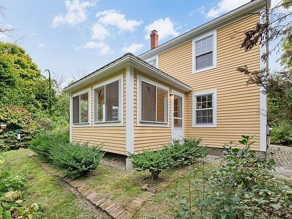 Charm and Character: Don't miss the chance to own this one-of-a-kind property that perfectly blends history, nature, and modern living. This historic gem nestled on 2.3 acres in a beautiful, private setting is the perfect haven for those who appreciate history and nature.Step inside to find original yellow pine floors, a formal living room with fireplace, cozy family room, a formal dining room, and an eat-in kitchen all filled with natural light. Upstairs, you'll find three generous bedrooms, each with its own unique character and charm. A fourth room upstairs offers flexible space for a home office, nursery, or guests. The property features mature trees, lush gardens, and walking paths that invite you to explore the outdoors. Enjoy relaxing on the sun porch, bird watching, or simply soaking in the tranquility of your private oasis. Desirably located, this historic home offers easy access to top-rated elementary and middle schools, commuter routes, walking trails, and Haggettts Pond