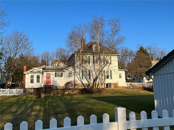 Large beautiful home on a 0.37 acre lot in town complete with a white picket fence. The oversized 2 car detached garage with metal roof built in 2011 faces the alley behind the home. This home has tons of character with lots of built ins, a gorgeous staircase with original woodwork, and 2 sets of pocket doors in the living room. There is a mudroom off the entrance on Maple St, . Wrap around 3 seasons room is a bonus. Possible 5th bedroom is captive. This home is located near the center of town - only a block away from main street and across the street from the University.