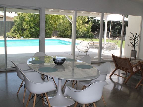 Mid-Century Modern Annual Lease in Sunrise Park Fully Furnished Pool Home Step into timeless style and comfort with this 1958 mid-century modern gem, designed by noted architect William Krises. Located in the heart of Sunrise Park, this fully furnished 3-bedroom, 2-bathroom home is move-in ready just bring your suitcase and start enjoying the Palm Springs lifestyle. Inside, you'll find polished concrete floors, updated bathrooms, and a modern kitchen with stainless steel appliances, including a gas range. The open living and dining areas offer picturesque views of the spacious backyard and sparkling private pool, creating a seamless indoor-outdoor living experience. Outdoors, enjoy dining under the covered patio with seating for six, cook on the built-in gas grill, or lounge poolside while taking in mountain and palm tree views. The expansive 11,700 sq ft lot features mature trees and plenty of privacy. Located just minutes from downtown Palm Springs, you'll be close to world-class shopping, dining, and entertainment. Home Highlights Fully Furnished Private Pool & Spacious Backyard Mountain and Palm Tree Views Gas Fireplace Outdoor Dining for 6 & Gas Grill Polished Concrete Floors Throughout Stainless Steel Appliances Including Gas Range Smart TV Carport & Driveway Parking for Up to 4 Cars. Monthly rent is based on a yearly rental if less rate will change depending on time of the year.