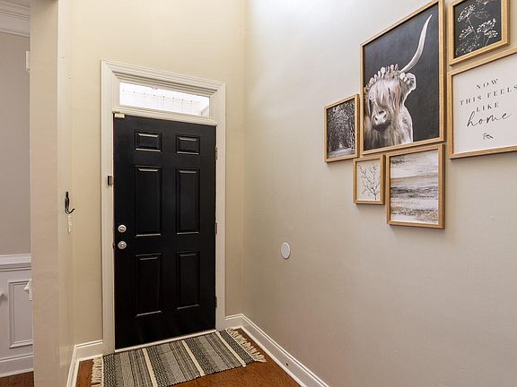 A charming rocking chair front porch invites you into a spacious foyer and formal dining room, complete with elegant paneling and detailed trim-work.