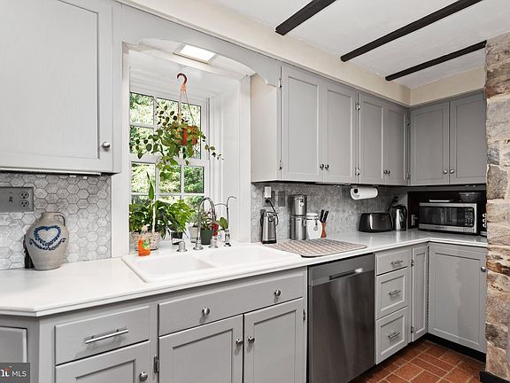 View this amazing 18th Century Estate including a stone home that must be seen to be appreciated! Sitting on 4.5 country acres, be charmed as youwalk through the unique, spacious home with modern upgrades (two heating systems, A/C, farmhouse kitchen, 2 1/2 baths, third floor finished den with exposed stone wall, relaxing sunroom and more!) And yes - - it's in the country - - but there is hi-speed internet available! The grounds include an 1800's bank barn, beautiful spring house wih huge fireplace, root cellar, hen house and corn crib. This place is ready for you, your family and all the animals you have or want to have here.