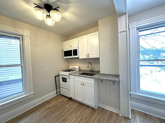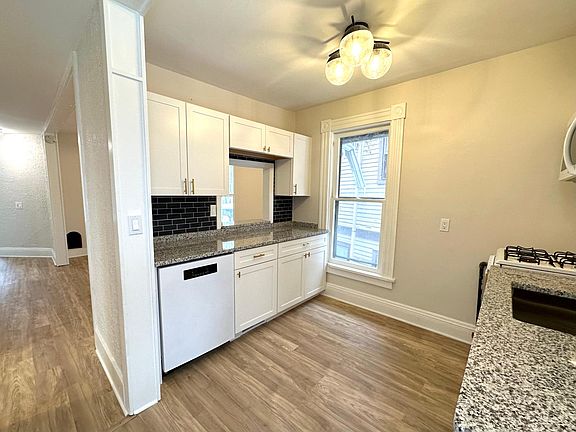 Available after a complete renovation, this unit is ready for anyone looking to move into a brand-new space. This 2 bedroom, 1 bath second floor apartment is bright and spacious with lots of windows, and modern lighting. One of the bedrooms could also serve as a perfect office space right off the main living area. The unit features a high-end kitchen with granite countertops and a pass through to the open living area. There is in-unit laundry and off-street parking available. This house is located on a peaceful side street but just minutes away from downtown Rochester's bars and restaurants, making it an ideal location for anyone looking for the best of city living. Renters pay for gas & electric. Owner pays for trash and lawn care. First month's rent due and security deposit is due at signing. No smoking allowed. Small dogs and cats permitted for an additional security deposit.