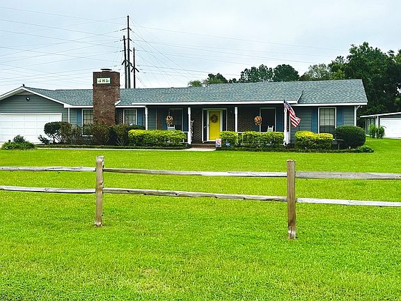 This spacious and beautifully updated gem has everything you've been looking for! This lovely property offers a seamless flow from the moment you step inside. A quaint sitting area greets you as you make your way into the sizable family room, complete with wood burning fireplace. The dining room sits just off the kitchen with eat-at bar and beautiful new granite countertops and stainless appliances. Down the hall, you'll find the guest bath, two guest bedrooms, and the primary suite, which offers his and her closets and tiled walk-in shower. An additional sizable fourth bedroom just off the living area offers versatility, easily making the perfect office or game room. Outside you will find a saltwater pool, covered patio, screened cookhouse with sink, outdoor shower, and half bath. Additionally there is a huge 900 square foot detached garage and workshop and a 50 AMP camper hook up. This home has so much to offer, call to set up a tour today!
