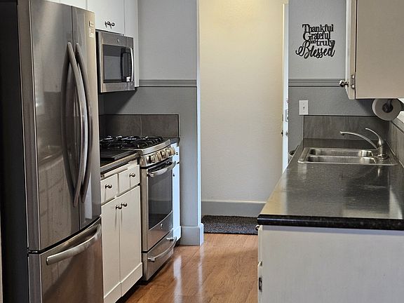 OPEN HOUSE SATURDAY MAY 10 11-12 Beautiful 3-bedroom, 1-bathroom house in Lebanon, Oregon that backs up to a private greenway backyard. This lovely abode spans 1,012 sqft PLUS 200 sq' finished garage and features all new stainless steel appliances. The garage is finished for a home office or man cave. Situated in a peaceful neighborhood with easy access to local amenities. Very efficient home with natural gas heating and a mini split air conditioner. 2 raised bed garden plots. Beautiful yard which must be maintained. (You may hire out the yard care if you prefer to spend your weekends elsewhere.) Easy access to shopping, hospital, schools. Excellent references required. 1 small dog permitted with pet rent. Tenant responsible for all utilities and yard care. Tenant pays all utilities Must be willing to maintain landscape. No smoking allowed.