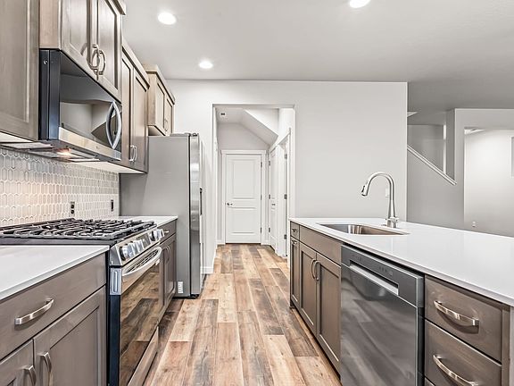 Welcome to this brand-new Blackrock home located in the vibrant Stapleton community in Meridian. This stunning property features 4 spacious bedrooms and 2.5 bathrooms, with an open-concept living area designed for comfort and relaxation. The designer kitchen features stainless steel appliances, granite countertops, a 5-burner gas range, built-in microwave, and a walk-in pantry, all flowing into the open living and dining areas. The dining room opens to a covered patio and fully fenced backyardperfect for entertaining. Upstairs, you'll find all 4 bedrooms along with a conveniently located laundry room. The community offers numerous amenities such as a park, walking trails, a basketball court, and a playground, enhancing your outdoor lifestyle. Front landscaping is included, ensuring a beautiful exterior with minimal upkeep. Additionally, the home's proximity to I-84 allows for an easy commute to downtown Boise, the airport, shopping, and restaurants. This home combines modern luxury with practical living in a thriving community.