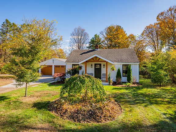 Beautifully Renovated Gem in Cheshire. This stunningly renovated two-bedroom, one-bath home in Cheshire showcases exceptional craftsmanship and attention to detail at every turn. Step inside to an open-concept floor plan that feels bright and inviting, featuring a modern eat-in kitchen with beautiful stainless steel appliances, custom tile work, and high-end finishes that truly elevate the space. Every inch of the home reflects thoughtful design and quality - from the stylish flooring to the trim work and lighting choices. Outside, you'll find a spacious, lightly wooded lot with a fantastic yard (over 1 acre) perfect for entertaining, relaxing, or family gatherings. The inviting covered front porch extends your living space outdoors - an ideal spot to sip your morning coffee, read a book, or unwind after a long day. A detached two-car garage provides ample storage and convenience. All major systems have been updated, including new central air and a split-system heat pump, garage doors, water heater, replacement windows, gutters, and more! Enjoy the peace of mind that comes with newer high-efficiency mechanicals, ensuring comfort and reliability year-round. Located in one of Cheshire's most desirable areas, this one-of-a-kind home offers easy access to shopping, restaurants, and top-rated schools - all while providing a convenient commute to surrounding towns.