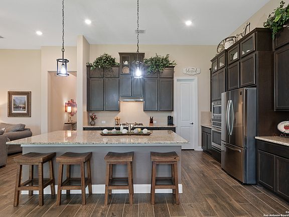Exceptional single-story home 3-2 plus office located in the heart of The Woods of Boerne, a gated community offering privacy, convenience, AND NO MUD TAX! Meticulously maintained inside and out, this newer home is surrounded by mature trees and beautifully landscaped grounds, creating a peaceful and private setting. Inside, you'll find the family room filled with natural light and enhanced by tall ceilings, offering a bright and airy living space. A welcoming entryway and versatile office space lead into the spacious island kitchen and generous living area. Designed for both functionality and style, the kitchen features custom cabinetry, granite countertops, stainless steel appliances, and gas cooking - perfect for any home chef or entertainer. The private primary suite is tucked away at the rear of the home and features a spa-like bathroom and one of the largest walk-in closets you'll find. Ideally situated near top-rated schools, shopping, River Road Park, Cibolo Nature Center, and the charm of Main Street Boerne - this home is a rare find in an unbeatable location.