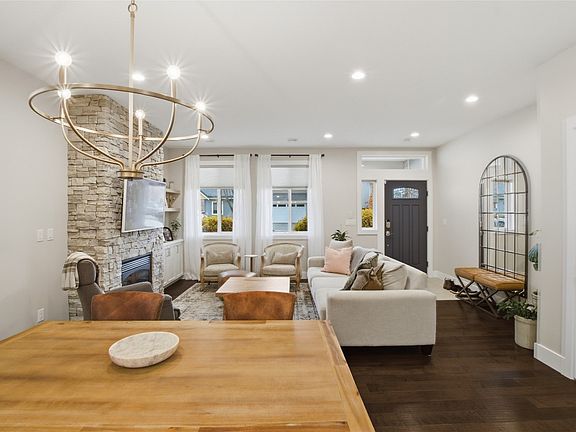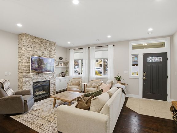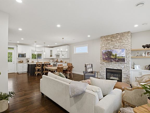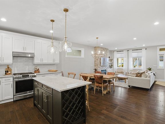 Modern updatesLevel-entry convenienceInviting open-concept layoutKitchen features custom cabinetryGranite countertopsStainless steel appliancesSpacious island