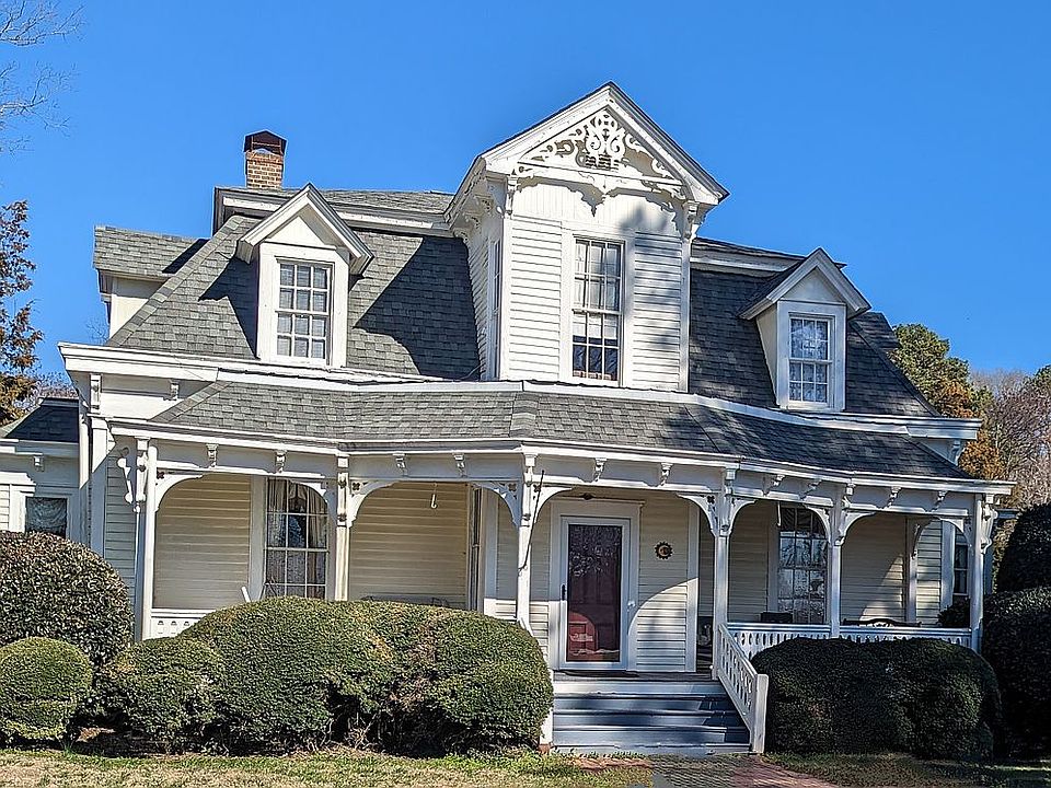Architecturally significant Victorian home on 13 acres total with large natural pond. Original heart pine wood floors and two fireplaces; many original interior features. Playground area, separate shop building, RV shelter, and horse facilities. Two large downstairs parlor rooms have been used as bedrooms in the past; three bedrooms upstairs.