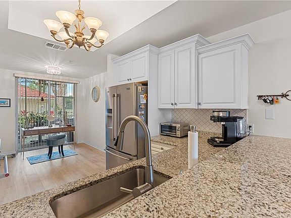 Welcome to Your Dream Golf Retreat in sunny Naples located on the 16th tee! GOLF MEMBERSHIP INCLUDED You will love this unique, desirable 1st floor Veranda unit with two lanais, a den/office and detached garage. Discover the perfect blend of elegance and relaxation at 2780 Cypress Trace Circle, Unit #2314, in the highly coveted Cypress Woods Golf & Country Club. This updated FIRST FLOOR condo features 2 large bedrooms with generous closet space, plus a den/office, 2 full bathrooms, and an open-concept design with a light, airy feel. This condo is offered turn key furnished with a few exceptions. There is a detached ONE CAR GARAGE with plenty of room for storage and a 2nd car in the driveway. There are 7 modern ceiling fans. The open kitchen boasts granite countertops, stainless steel appliances, a farmhouse sink, new tile backsplash and modern cabinetry, while the primary suite offers 2 walk-in closets, dual sinks, and a spa-like shower. Recent updates include a new AC system, light gray luxury vinyl plank flooring throughout, fresh paint, and upgraded lighting. There are TWO private screened lanais, perfect for morning coffee or evening relaxation. The front lanai offers afternoon sun - the rear lanai has morning sun with stunning golf course and pond views. Cypress Woods’ gated, bundled golf community offers an 18-hole championship course, tennis, pickleball, bocce, tree lined walking paths, a well equipped fitness center, clubhouse dining, and social events. There is a beautiful resort style pool and lap pool where you can order food or sip a tropical drink poolside. Cypress Trace has 3 community pools. Located minutes from Naples’ gorgeous white sand Gulf beaches, fine dining, and upscale shopping, this home is move-in ready and waiting for you.