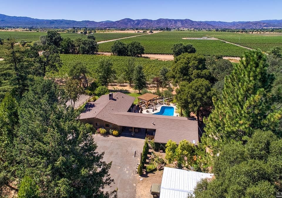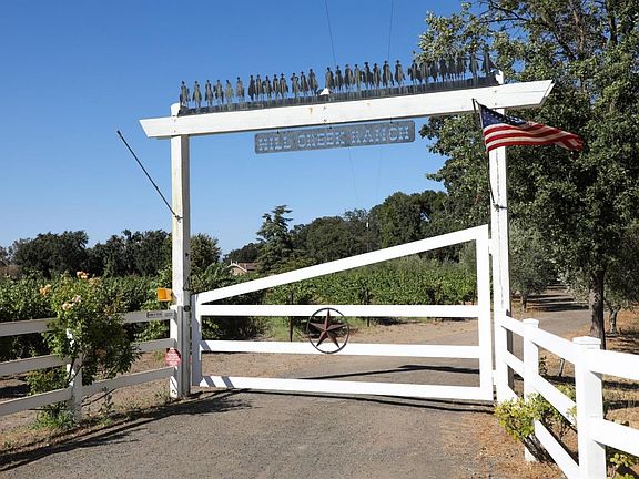 Two designer remodeled homes on 15.5 acres (3 APN's) including 4.5 acre organic Sauvignon Blanc vineyard under contract, 1089 sq ft event venue barn, award winning olive orchard, garden and solar heated greenhouse, in-ground pool with pool house, temperature controlled wine tasting studio, storage building, level pasture land for horses, private gate, amidst the magnificent oak trees and close to town. Exceptional vineyard estate property.