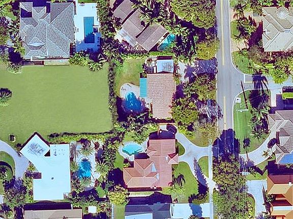 A 2700sqft 4 bedrooms/3 bathrooms and a large swimming pool can be found on the lot, but it is offered as land. The property is being sold AS IS in case someone chooses to keep the existing house.