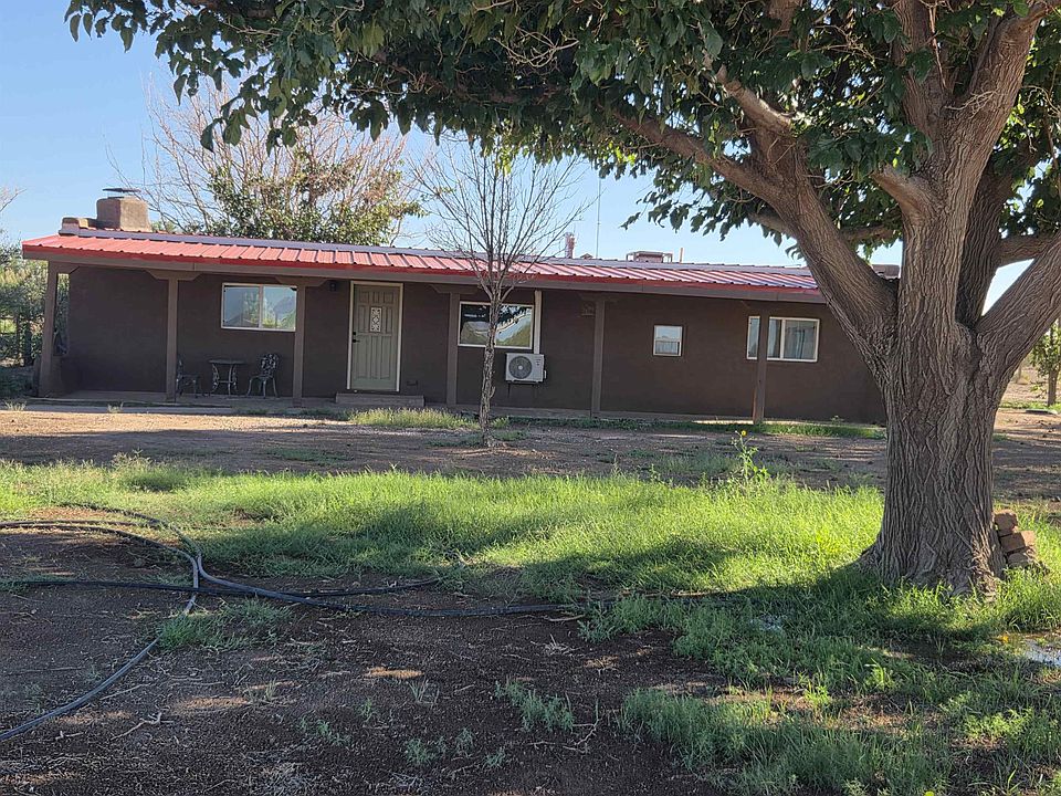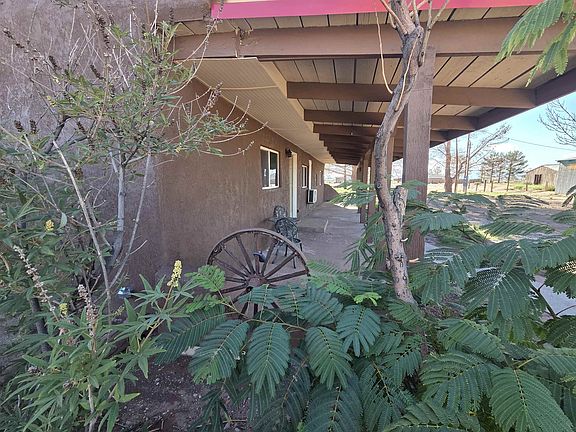Completely Transformed Interior Nestled on 7.746 acres with breathtaking views in every direction, this adobe home has been beautifully renovated inside and out. Step into an open living area featuring LVP flooring throughout, a cozy wood stove, and mini-splits in every room for year-round comfort. The kitchen is designed for both style and function with solid surface countertops, Custom Cabinets w/deep drawers, new appliances, and a convenient vegetable sink. A large owner suite includes, a walk-in shower, and a spacious walk-in closet that adds to the home’s thoughtful updates. Enjoy outdoor living with covered porches in both the front and back, plus a fenced courtyard perfect for pets or gardens. The durable metal roof ensures peace of mind, while the expansive acreage invites you to bring your animals and enjoy country living at its best. Experience perfect peace in this beautifully updated adobe retreat.