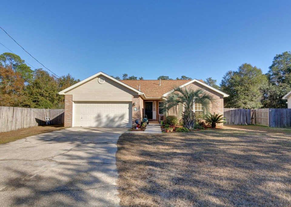 Perfect for a home business or hobbyist! New Roof 2016, new AC and new Windows 2013! This pristine 3 bed, 2 ba home at the end of a quiet cul-de-sac has a large fenced backyard featuring a 30'x 36' backyard workshop with an office and AC, and an RV pad with an electric hookup! Inside you'll find gorgeous open concept kitchen and living spaces with vaulted ceilings, light colored wood finishes, and new creamy paint. The Master bedroom features a vaulted ceiling, oversized closet and beautiful master bath. The additional bedrooms are bright and airy, and all three are newly carpeted. Just 5 miles to Navarre Beach, and around the corner from the East River Boat Ramp, this home has access to the Bays, the Sound and the Gulf.