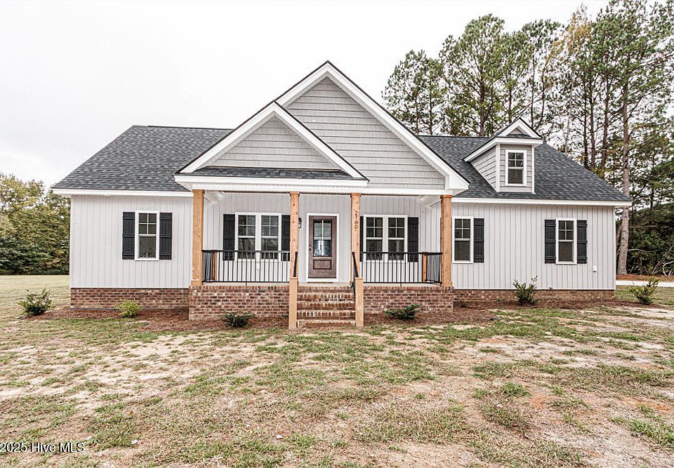 Brand-new custom home on nearly an acre in Nash County with no city taxes or HOA! This 3-bed, 2-bath open-concept split plan features a spacious primary suite with tile walk-in shower, dual vanities, and beauty station. Enjoy Siberian marble countertops, a Latin-inspired concrete range hood, and quality finishes like board & batten siding, cedar columns, and wrought iron porch rails. Includes a sealed, climate-controlled crawlspace and oversized 2-car carport—country living with quick access to I-95 & Hwy 64.