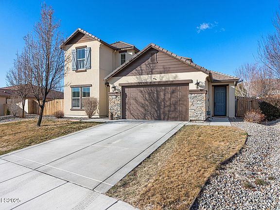 This competitively priced home is ready to sell! Featuring RV parking and a tandem 3-car garage—perfect for all your toys! Located in the highly sought-after Golden Hills neighborhood, this 5-bedroom, 4-bathroom home is just minutes from Damonte Ranch and South Reno schools. The property is beautifully maintained and fully landscaped, with a NextGen in-law suite that includes a 1-bedroom, 1-bath apartment with a stackable washer/dryer, partial kitchen (fridge included), a separate private entrance, from the driveway, and a sliding glass door leading to the patio. Enjoy close access to a variety of trails and neighborhood parks, as well as breathtaking views of Mt. Rose and the surrounding mountains. This home features an open kitchen with a large island and granite countertops. The living/family room opens up to the patio, offering a private retreat in the backyard with no two-story neighbors nearby. The backyard is fully landscaped with low-maintenance DG, a paver patio, and a lawn.