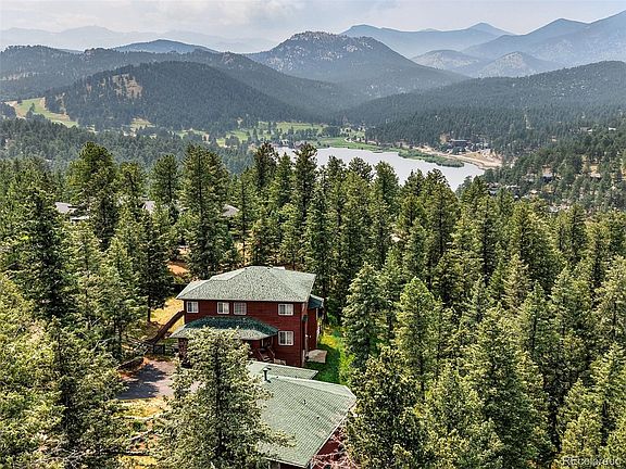 Pride of ownership shines throughout this beautifully maintained 4-bedroom, 4-bathroom home in Evergreen, offering 3,364 finished square feet of living space just 1 mile from Evergreen Lake. Situated on a walkout lot over half an acre, this two-story property with a fully finished basement provides both space and functionality. The main level features oak flooring, two stunning stone fireplaces, a large living area, and multiple spaces for relaxing or entertaining. The kitchen is appointed with slab granite countertops, island seating, knotty alder cabinets, stainless steel appliances, including a 5-burner gas range, double ovens, and large dining nook. A spacious deck just off the nook extends your living space outdoors. Main floor laundry provides added convenience. Upstairs offers two spacious bedrooms, a full bath, large open loft, and a private primary suite retreat with a 5-piece bath and private outdoor deck. The finished walk-out basement includes a generous family room, fourth bedroom, full bath, and a large crawl space for storage. Easy access to the yard and dog run just off the basement family room. Custom details throughout include solid knotty alder doors and built-in cabinetry/shelving, art niches and elegant rustic lighting. A stunning lodgepole bear carving marks the recently installed parking pad near the entrance with handcrafted natural stone steps descending to the home. Recently exterior updates include freshly added stonework, a full exterior paint refresh in 2020, and a new roof and gutters installed in 2023. This home offers the perfect blend of mountain charm and modern comforts. Enjoy easy access to Evergreen Lake, hiking trails, parks, shopping, and dining. Evergreen is known for its small-town feel, scenic beauty, and vibrant year-round community—just a short drive to Denver.