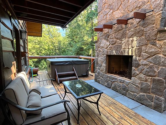Discover the ultimate mountain retreat in this exquisite 3-bedroom log home, perfectly blending luxury and coziness. The master enclave offers a private sanctuary, while the inviting living area features a stunning wood-burning fireplace, perfect for aprs-ski relaxation. Step outside to unwind in the hot tub on the spacious deck, surrounded by breathtaking views. Host elegant dinners in the formal dining area, and enjoy the convenience of a garage for your vehicles and gear. Located just a short drive from the Creekside gondola, this home is your gateway to Whistler's world-class skiing and year-round adventures. Experience mountain living at its finest!